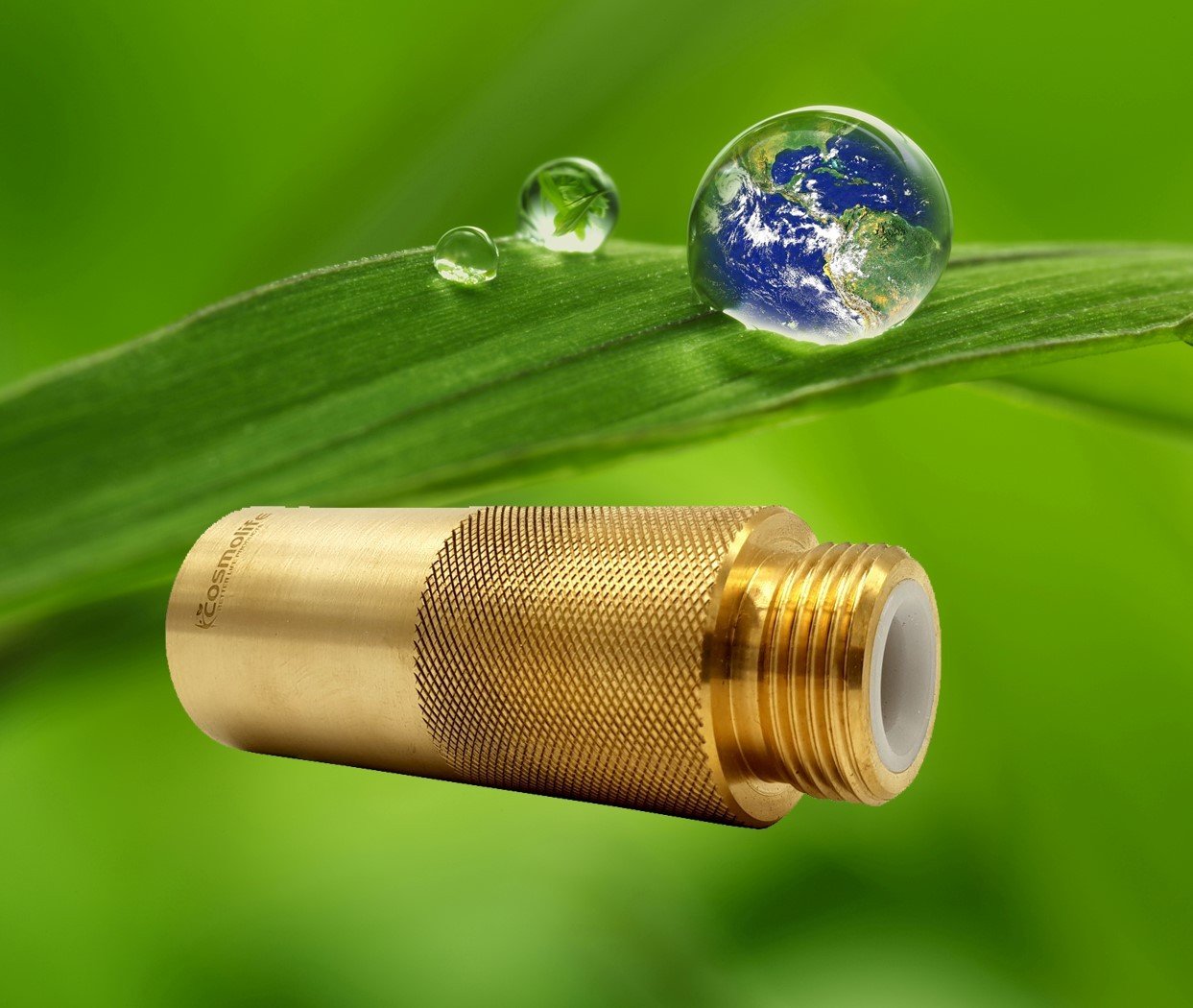 Questo modulo in ottone massiccio è riempito a mano con una combinazione precisamente composta di pietre preziose e molte altre pietre minerali diverse. Il vortice dell’acqua e la sua tensione superficiale la fanno oscillare. L’oscillazione risultante – paragonabile a una vibrazione ultrasonica – scioglie lo sporco e assicura la purezza.